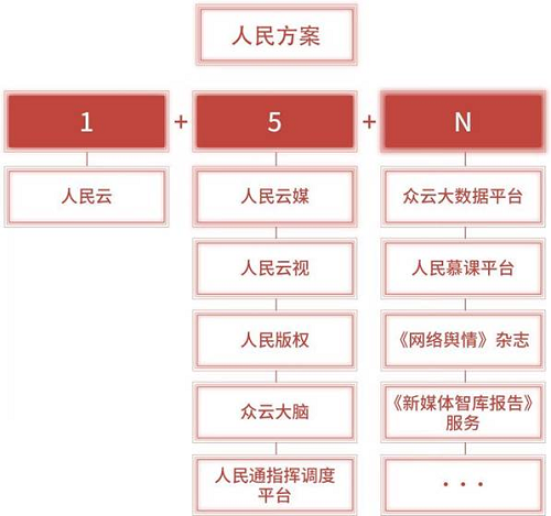 秉承开放共享、协同发展的核心价值观,人民在线围绕“人民云”、“人民链”完成业务体系构建,形成人民舆情、人民咨询、人民融媒、人民数据、人民金服五大业务板块。其中,人民融媒以协同发展为核心,提出 “内容+经营”模式赋能地方融媒体中心的“人民方案”。